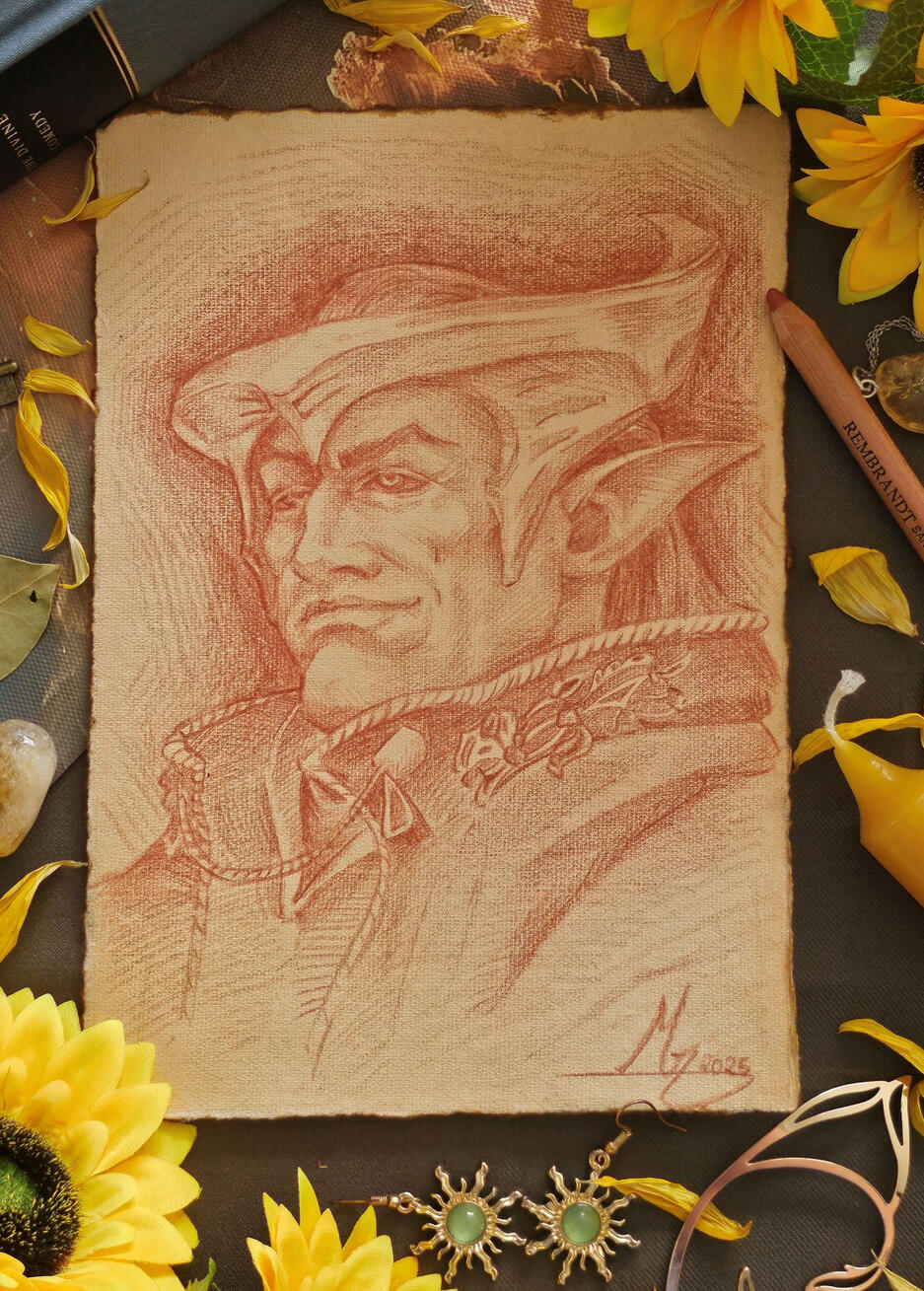 Drawn with sanguine chalk on 100% cotton paper, a5 format.